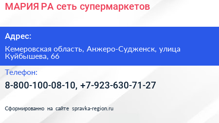 МАРИЯ-РА, сеть супермаркетов по адресу Кемеровская область, Анжеро-Судженск, улица Куйбышева, 66 в дальнейшем Организация, размещена в следующих категориях: