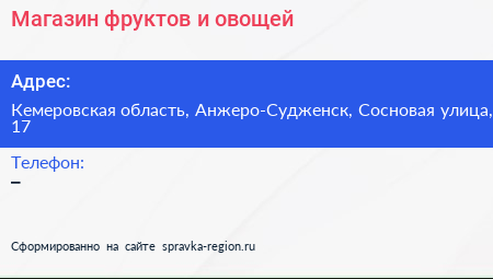Магазин фруктов и овощей по адресу Кемеровская область, Анжеро-Судженск, Сосновая улица, 17 в дальнейшем Организация, размещена в следующих категориях: