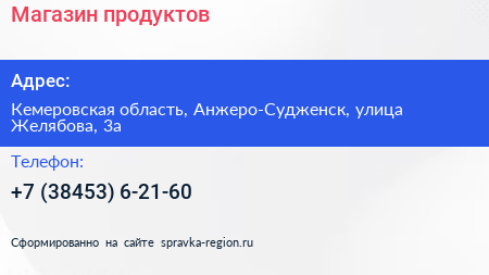 Магазин продуктов по адресу Кемеровская область, Анжеро-Судженск, улица Желябова, 3а в дальнейшем Организация, размещена в следующих категориях: