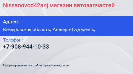 Nissanovod42anj, магазин автозапчастей по адресу Кемеровская область, Анжеро-Судженск, в дальнейшем Организация, размещена в следующих категориях:
