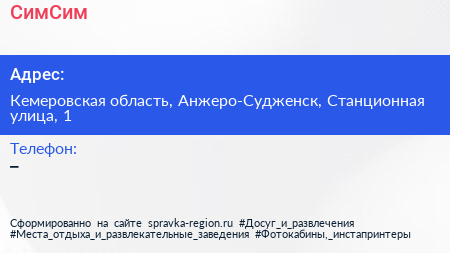СимСим по адресу Кемеровская область, Анжеро-Судженск, Станционная улица, 1 в дальнейшем Организация, размещена в следующих категориях: