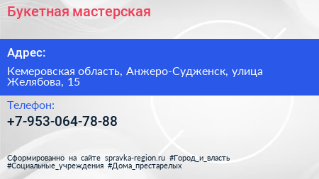 Букетная мастерская по адресу Кемеровская область, Анжеро-Судженск, улица Желябова, 15 в дальнейшем Организация, размещена в следующих категориях: