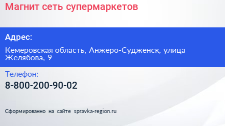 Магнит, сеть супермаркетов по адресу Кемеровская область, Анжеро-Судженск, улица Желябова, 9 в дальнейшем Организация, размещена в следующих категориях: