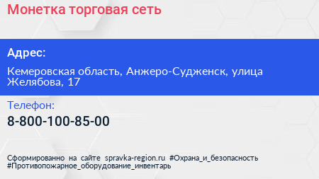 Монетка, торговая сеть по адресу Кемеровская область, Анжеро-Судженск, улица Желябова, 17 в дальнейшем Организация, размещена в следующих категориях: