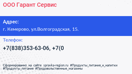 ООО Гарант Сервис по адресу г. Кемерово, ул.Волгоградская, 15. в дальнейшем Организация, размещена в следующих категориях: