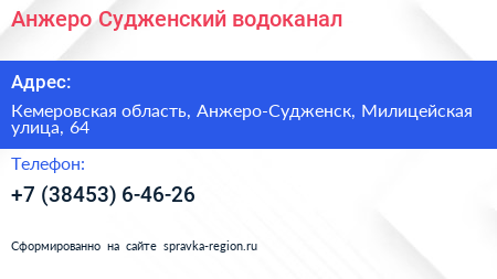 Анжеро-Судженский водоканал по адресу Кемеровская область, Анжеро-Судженск, Милицейская улица, 64 в дальнейшем Организация, размещена в следующих категориях: