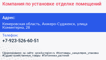 Компания по установке отделке помещений по адресу Кемеровская область, Анжеро-Судженск, улица Коминтерна, 28 в дальнейшем Организация, размещена в следующих категориях: