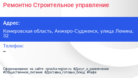 Ремонтно-Строительное управление по адресу Кемеровская область, Анжеро-Судженск, улица Ленина, 32 в дальнейшем Организация, размещена в следующих категориях: