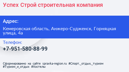 Успех Строй, строительная компания по адресу Кемеровская область, Анжеро-Судженск, Горняцкая улица, 4а в дальнейшем Организация, размещена в следующих категориях: