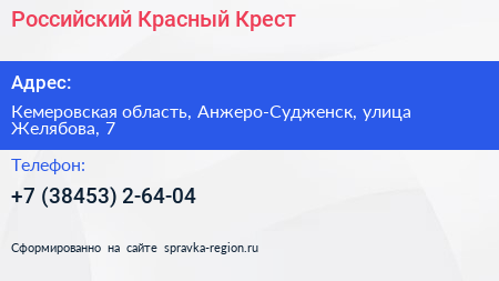 Российский Красный Крест по адресу Кемеровская область, Анжеро-Судженск, улица Желябова, 7 в дальнейшем Организация, размещена в следующих категориях: