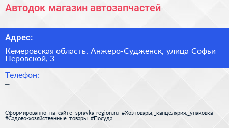 Автодок, магазин автозапчастей по адресу Кемеровская область, Анжеро-Судженск, улица Софьи Перовской, 3 в дальнейшем Организация, размещена в следующих категориях: