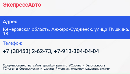 ЭкспрессАвто по адресу Кемеровская область, Анжеро-Судженск, улица Пушкина, 18 в дальнейшем Организация, размещена в следующих категориях: