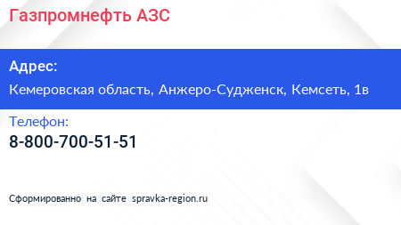 Газпромнефть, АЗС по адресу Кемеровская область, Анжеро-Судженск, Кемсеть, 1в в дальнейшем Организация, размещена в следующих категориях: