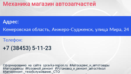 Механика, магазин автозапчастей по адресу Кемеровская область, Анжеро-Судженск, улица Мира, 24 в дальнейшем Организация, размещена в следующих категориях: