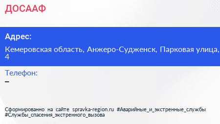 ДОСААФ по адресу Кемеровская область, Анжеро-Судженск, Парковая улица, 4 в дальнейшем Организация, размещена в следующих категориях:
