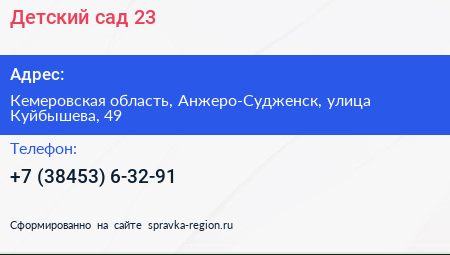 Детский сад №23 по адресу Кемеровская область, Анжеро-Судженск, улица Куйбышева, 49 в дальнейшем Организация, размещена в следующих категориях: