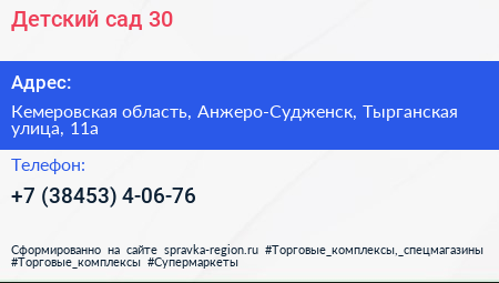 Детский сад №30 по адресу Кемеровская область, Анжеро-Судженск, Тырганская улица, 11а в дальнейшем Организация, размещена в следующих категориях: