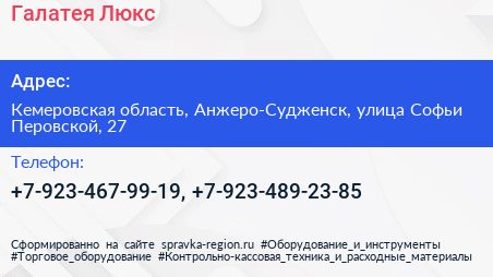 Галатея Люкс по адресу Кемеровская область, Анжеро-Судженск, улица Софьи Перовской, 27 в дальнейшем Организация, размещена в следующих категориях: