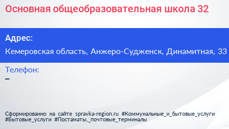 Основная общеобразовательная школа №32 по адресу Кемеровская область, Анжеро-Судженск, Динамитная, 33 в дальнейшем Организация, размещена в следующих категориях: