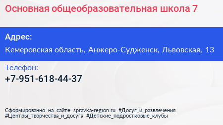 Основная общеобразовательная школа №7 по адресу Кемеровская область, Анжеро-Судженск, Львовская, 13 в дальнейшем Организация, размещена в следующих категориях: