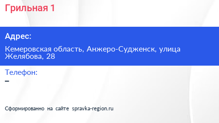 Грильная №1 по адресу Кемеровская область, Анжеро-Судженск, улица Желябова, 28 в дальнейшем Организация, размещена в следующих категориях: