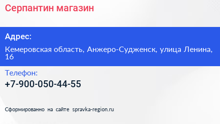 Серпантин, магазин по адресу Кемеровская область, Анжеро-Судженск, улица Ленина, 16 в дальнейшем Организация, размещена в следующих категориях: