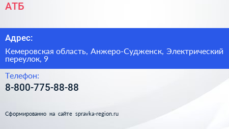 АТБ по адресу Кемеровская область, Анжеро-Судженск, Электрический переулок, 9 в дальнейшем Организация, размещена в следующих категориях: