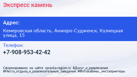 Экспресс-камень по адресу Кемеровская область, Анжеро-Судженск, Кузнецкая улица, 15 в дальнейшем Организация, размещена в следующих категориях: