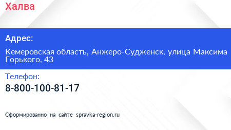 Халва по адресу Кемеровская область, Анжеро-Судженск, улица Максима Горького, 43 в дальнейшем Организация, размещена в следующих категориях: