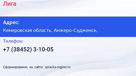 Лига по адресу Кемеровская область, Анжеро-Судженск, в дальнейшем Организация, размещена в следующих категориях: