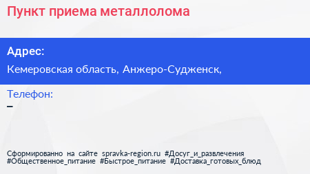 Пункт приема металлолома по адресу Кемеровская область, Анжеро-Судженск, в дальнейшем Организация, размещена в следующих категориях:
