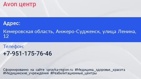 Avon, центр по адресу Кемеровская область, Анжеро-Судженск, улица Ленина, 12 в дальнейшем Организация, размещена в следующих категориях: