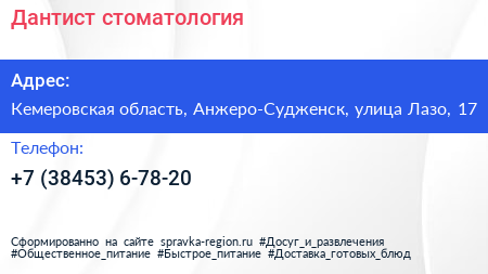 Дантист, стоматология по адресу Кемеровская область, Анжеро-Судженск, улица Лазо, 17 в дальнейшем Организация, размещена в следующих категориях: