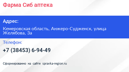 Фарма-Сиб, аптека по адресу Кемеровская область, Анжеро-Судженск, улица Желябова, 3а в дальнейшем Организация, размещена в следующих категориях: