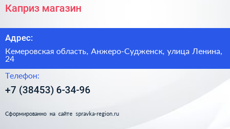 Каприз, магазин по адресу Кемеровская область, Анжеро-Судженск, улица Ленина, 24 в дальнейшем Организация, размещена в следующих категориях: