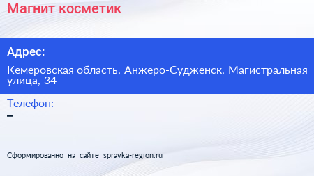 Магнит косметик по адресу Кемеровская область, Анжеро-Судженск, Магистральная улица, 34 в дальнейшем Организация, размещена в следующих категориях: