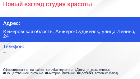 Новый взгляд, студия красоты по адресу Кемеровская область, Анжеро-Судженск, улица Ленина, 24 в дальнейшем Организация, размещена в следующих категориях: