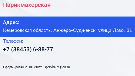 Парикмахерская по адресу Кемеровская область, Анжеро-Судженск, улица Лазо, 31 в дальнейшем Организация, размещена в следующих категориях: