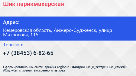 Шик, парикмахерская по адресу Кемеровская область, Анжеро-Судженск, улица Матросова, 115 в дальнейшем Организация, размещена в следующих категориях: