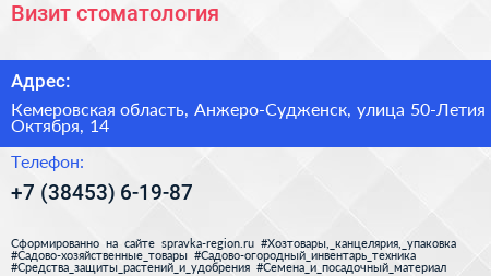 Визит, стоматология по адресу Кемеровская область, Анжеро-Судженск, улица 50-Летия Октября, 14 в дальнейшем Организация, размещена в следующих категориях: