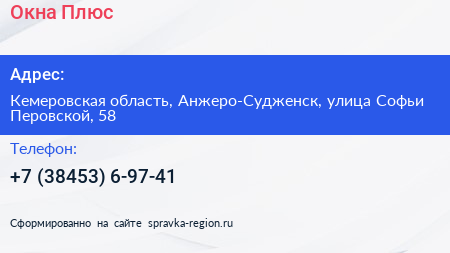 Окна Плюс по адресу Кемеровская область, Анжеро-Судженск, улица Софьи Перовской, 58 в дальнейшем Организация, размещена в следующих категориях: