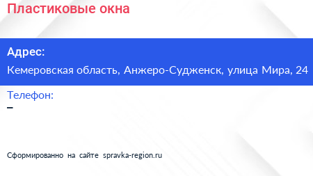 Пластиковые окна по адресу Кемеровская область, Анжеро-Судженск, улица Мира, 24 в дальнейшем Организация, размещена в следующих категориях:
