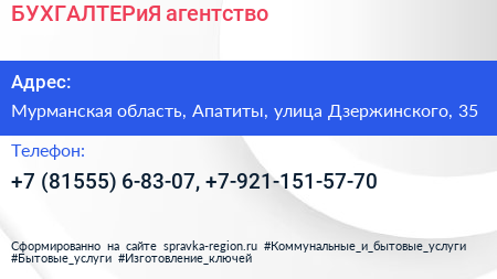 БУХГАЛТЕРиЯ, агентство по адресу Мурманская область, Апатиты, улица Дзержинского, 35 в дальнейшем Организация, размещена в следующих категориях: