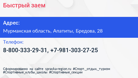Быстрый заем по адресу Мурманская область, Апатиты, Бредова, 28 в дальнейшем Организация, размещена в следующих категориях: