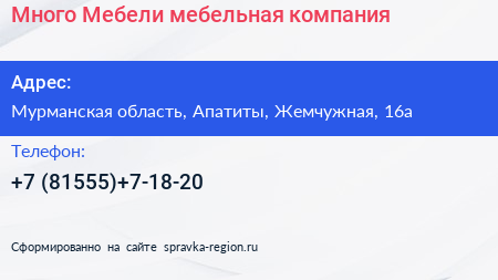 Много Мебели, мебельная компания по адресу Мурманская область, Апатиты, Жемчужная, 16а в дальнейшем Организация, размещена в следующих категориях: