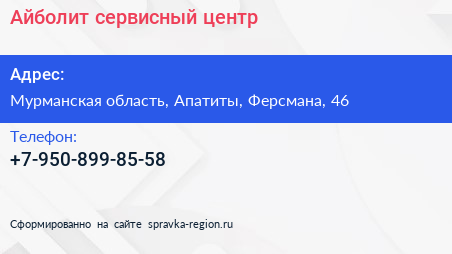 Айболит, сервисный центр по адресу Мурманская область, Апатиты, Ферсмана, 46 в дальнейшем Организация, размещена в следующих категориях: