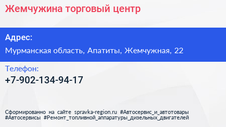 Жемчужина, торговый центр по адресу Мурманская область, Апатиты, Жемчужная, 22 в дальнейшем Организация, размещена в следующих категориях: