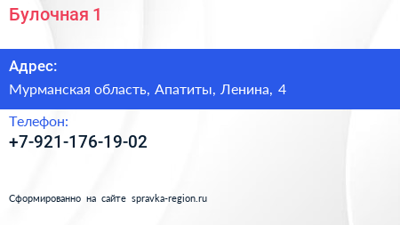 Булочная №1 по адресу Мурманская область, Апатиты, Ленина, 4 в дальнейшем Организация, размещена в следующих категориях: