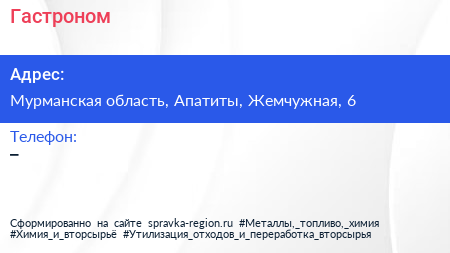 Гастроном по адресу Мурманская область, Апатиты, Жемчужная, 6 в дальнейшем Организация, размещена в следующих категориях: