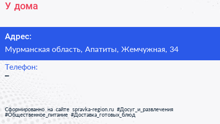 У дома по адресу Мурманская область, Апатиты, Жемчужная, 34 в дальнейшем Организация, размещена в следующих категориях: